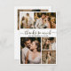 Elegant, Minimalist "Thanks so much" Script Wedding 5 Photo Collage Thank You Cards. Modern wedding thank you card template featuring five (5) photo on the front and one (1) photo on the back. With the text "Thanks so much" in a swirly hand lettered typography script font in black on white background. Add your name, photos and thank you message. If you prefer to handwrite your note, just delete the sample text to make more space. Please contact me if you need help with this design.