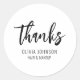 Thanks Simple Chic Handwriting Black White Classic Round Sticker. Personalize with your custom name and title.