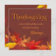 Thanksgiving Blessings -- Elegant abstract Thanksgiving dinner party invitation cards with envelopes, decorated with falling leaves and fancy scrolls in warm autumn colours. Illustration © Teri Francis. Matching postage stamps an greeting cards available in gallery.