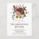 La carte postale contient une élégante invitation Thanksgiving. Un beau bouquet de fleurs et de feuilles à fleurs apporte la décoration florale. Les couleurs chaudes de automne de rouge bordeaux, jaune doré et vert foncé créent l'ambiance parfaite. Les détails du dîner Thanksgiving suivent. Thanksgiving et vos noms sont écrits dans un texte décoratif rouge bordeaux. L'arrière de l'invitation de carte postale a une fleur d'automne sprig et Thanksgiving est de nouveau écrit dans un grand texte décoratif. Il y a un espace pour votre message personnel. Votre adresse de retour est incluse pour votre commodité. Tout le texte est modifiable.
