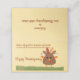 This table place card can be used for a celebration with family and friends or for a sponsored Thanksgiving event. On the front is my cartoon style drawing of a cute turkey with patterned tail feathers. The text that says "Happy Thanksgiving" can be changed. The line on the top has text that can be removed to hand write the name of a guest or changed to the name of the group sponsoring the event. You can also change the text on the back of the card.