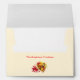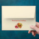 A Thanksgiving envelope with my design of a cornucopia on the front and back. Back text says "Thanksgiving Greetings".