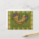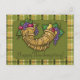 Thanksgiving Cornucopia Postcard. Great green plaid and luscious cornucopia basket, a fine Thanksgiving postcard!