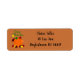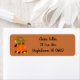 These return address labels have a Thanksgiving design of a pumpkin with a pile of leaves and falling leaves and reminds people to give thanks.