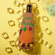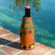 This bottle cooler has a Thanksgiving design of a pumpkin with a pile of leaves and falling leaves and reminds people to give thanks.