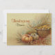 Customizable Thanksgiving invitation with vintage illustration of season harvest, pumpkins and corn in a basket.
