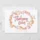 A stylish Design with Thanksgiving Dinner in a mix of autumn colours and set in an elegant script typography sitting within a leafy border upon a geometric frame. On the reverse, easily personalise with your own details. The background colours can be changed if you wish via the Click to Customize Further option,