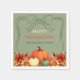 Thanksgiving dinner pumpkin bow muted moss green napkin