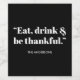 Add a touch of modern elegance to your Thanksgiving table with this custom wine bottle label featuring the festive phrase “Eat, drink & be thankful.” Designed with a bold black background and crisp white typography, this label is both timeless and stylish — perfect for any Thanksgiving celebration.