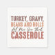 This fun and festive Thanksgiving design features the playful phrase "Turkey, Gravy, Beans and Rolls, Let Me See That Casserole" in a bold, eye-catching layout. The text is arranged in a mix of blocky, distressed fonts and elegant script, creating a dynamic and engaging visual effect. The colour palette includes warm, earthy tones like browns, oranges, and reds, perfectly reflecting the cozy and comforting atmosphere of a Thanksgiving feast. The distressed texture of the text adds a rustic, vintage feel to the design, making it ideal for the holiday.