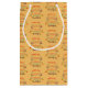 Holiday gift bag shown in a light golden colour with a festive Thanksgiving print.