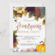 Modern glamourous copper glitter typography Thanksgiving friendsgiving dinner party invitation featuring autumn fall burgundy and ivory cream flowers with dried leaves and foliage, an orange rustic pumpkin, grapes and two glasses of red wine. ++++++++++ The invitation is suitable for elegant trendy family and friends gatherings.