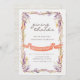 A frame of hand drawn watercolor laurel foliage with seed pods. A beautiful nature theme for Thanksgiving dinner in browns, purples, sage greens, and soft reds with a banner announcing the date of your event. Natural grey woodgrain on the back of invitation.
