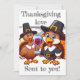 This card can be used to invite people to your table this Thanksgiving or to send your love as they are not at your table. Thanksgiving fun cartoon card fits the bill and will be warmly received with that friendly turkey raising a glass of wine.
