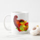 Coffee mug shown with a festive Thanksgiving harvest cornucopia print.