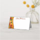 This folded name place card is shown in basic white with a Thanksgiving fall autumn leaves graphic print.