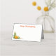 This folded name place card is shown in basic white with a Thanksgiving pumpkin graphic print.