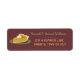 Ces étiquettes d'adresse de retour Thanksgiving ont une tranche de tarte citrouille dessinée à la main avec de la crème fouettée. L'arrière - plan est de couleur bordeaux rouge foncé, mais on peut le customiser à n'importe quelle ombre. Utilisez les modèles simples pour ajouter votre texte. Voir les invitations à la fête Friendsgiving correspondantes ici : https://www.zazzle.com/thanksgiving_friendsgiving_party_pumpkin_pie_humor_invitation-256596683769508955