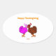 You can admire my adorable drawing of a pink turkey and a brown turkey, I call this drawing, "Thanksgiving Passion," with the text, "Happy Thanksgiving. Added onto this oval sticker, this oval sticker makes the perfect Thanksgiving gift.