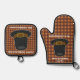 Thanksgiving Pilgrim Hat on Tan and Brown Plaid Oven Mitt & Pot Holder Set