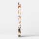 A phone case with a seasonal Thanksgiving pattern. Featuring whimsical pilgrims, turkeys, pumpkin pie and other various autumn themed elements.