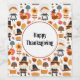 Thanksgiving bottle labels with a seasonal pattern. Featuring whimsical pilgrims, turkeys, pumpkin pie and other various autumn themed elements.