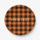 Thanksgiving Plaid Pattern In Black And Orange Paper Plate