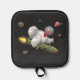 A fun and sweet Thanksgiving Pot Holder where the Turkey has escaped from Thanksgiving and is travelling through the universe with the help of his rocket.