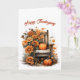 Cette image est une illustration de charmante aquarelle représentant une chaise en bois rustique ornée d'éléments automnaux. La chaise est entourée d'un éventail de fleurs oranges et de feuillage vibrants, créant une atmosphère de chute riche et confortable. Sur la chaise et autour de sa base sont des citrouilles, en mettant davantage l'accent sur le thème de l'automne. La composition est chaleureuse et accueillante, captant l'essence de la chute avec ses couleurs vives et terreuses. Les oeuvres d'art dégagent un sentiment de confort et de beauté saisonnière, ce qui en fait une représentation parfaite d'une scène d'automne idyllique.