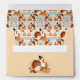 Enhance your autumn celebrations with our delightful envelope design, featuring Tom Turkey as the centerpiece! Adorned with playful Pilgrim hats, Tom is surrounded by beautifully detailed pumpkins, vibrant autumn leaves, and floral accents. Rich, earthy tones of orange, brown, and red create a warm, inviting ambiance, while delicate swirling vines and soft green foliage add a whimsical charm.