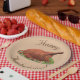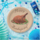 Design features the image of a baked turkey as centre design. The words "Happy Thanksgiving!" are displayed as an arch above and below image in brown lettering. Background is a light shade of tan. All text is customizable.