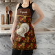 This design features a white Thanksgiving turkey set against a leaf pattern in classic fall colours of red, gold, and brown. Your name appears in cream script on a colour block of autum brown. This classic look helps provide a festive air for Thanksgiving or other harvest cooking as you prepare for your feast.