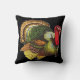 Wild Turkey Happy Thanksgiving pillows with black background makes the colours in the wild turkey pop. Great for your fall decor also have designs with other colours of background available.