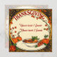 A Thanksgiving invitation and or greeting..Text written in a yellow circle with Thanksgiving fruits and veggies and autumn frame, Customizable and personalize.. The back is a lower opacity basic image of the front.. that can be written on or changed as you wish