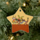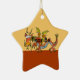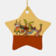 A whimsical cartoon dragon illustration is in browns, golds, orange, with a pale blue underside on side one of this star shaped ornament. On side two is a purple green dragon with text: "Thar Be Dragons". You can edit text to create your own personalized gift. Need help, email lilly@lillyarts.com