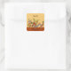 A whimsical cartoon dragon illustration on a square sticker is in browns, golds, orange, with a pale blue underside. You can edit text to create your own personalized gift. Need help, email lilly@lillyarts.com