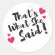 “That’s What She Said” Funny– Sarcastic Humour Classic Round Sticker