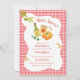 This cute and trendy invitation is perfect for a Bridal Shower with the "That's Amore" theme or an Italian theme. The design features an illustration of typical Italian food such as tomatoes, olive oil, lasagna and pasta. A red plaid texture background and an olive branch on the corner complete this adorable card.
