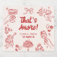 The That's Amore! Red Italian suite is a playful and passionate celebration of love with a retro twist. This collection features bold red hand-drawn illustrations inspired by all things Italian—think wine glasses, pizza slices, confetti, and cherubs—all set against a soft cream background. Whimsical linework and a striking striped backing card add a festive and fun touch, perfect for couples who want to celebrate their engagement or wedding with personality and flair. The suite is ideal for events that blend romance with joyful celebration in true Italian style.