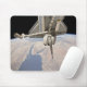 The aft section of the docked space shuttle mouse pad