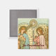 RLS 04: Antique image in chromolithography with gilt accents of The Annunciation from Red Letter Saints: Being a Series of Biographies of those Saints for which Proper Collects, Epistles and Gospels are appointed in the Book of Common Prayer. Printed by E. Kaufmann, Lahr, Baden, Germany, for the Society for Promoting Christian Knowledge / S.P.C.K. (London, 1911), p. 25. From the designer’s private library. + Feast: March 25 + Text is in dark red-brown (#460000) which matches the figures' outlines.