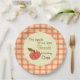 Celebrate your little one’s big day with this adorable first birthday paper plate! Featuring a sweet smiling apple clipart, playful red plaid background, and the phrase “the apple of our eyes is turning one”, this design is the perfect mix of cute and rustic. Great for fall or farm-themed birthday parties, apple orchard celebrations, or cozy family gatherings. Easily personalize with your child’s name and age. A charming way to invite friends and family to celebrate your baby’s birthday!