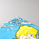 Little blonde cupid-like cartoon character with wings and big red shoes cocking his bow while standing on a skull. Illustration by Italian cartoonist Antonio Rubino from the cover of Maggiolata, 1906.