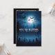 A creepy army of shadowy figures under a night sky with a full moon and plenty of bats makes the perfect Halloween invitation. The back is solid black, with space for details about the party. Could work for teen parties, too.