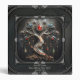 The Art Deco Tree of Life design. A stylized tree of life in silver metal with intricate details. The twisted trunk is textured and rests on a geometric base. The branches are decorated with red and green jewels, while the leaves shimmer in a bluish-green hue. The dark grey background highlights the design, which is framed by an elegant Art Deco border with geometric patterns.