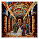 A.I. assisted print of a group of robe, conspiratorial assassins gathered within a vibrant, arched bricked, temple corridor awaiting the arrival of Julius Caesar.