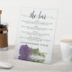 This tabletop sign is a great way to let your guests know the bar menu at your wedding reception. It features a simple yet elegant design with a photo of a single long-stemmed amethyst purple coloured rose reflecting in a pool of water with waves and ripples. The title is written in elegant script calligraphy and reads: The Bar. There is space for your drinks menu as well as the names of the couple and wedding date.