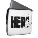 The sleeve is made of nice feeling material and seems very durable. I'm not sure how easy it'll be to clean, but the construction seems sound and the fabric is quick thick. I also like the double zipper. The printing is lovely and appears durable. The white on black contrast is nice, and the design very elegant.