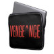 "Vengeance" typography text featuring Batman in the rain standing in front of the letter "A".