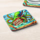 This coaster explodes with pure pulp-monster chaos: a neon-green kraken tearing through surf and splinters, ready to claim the coast. It’s loud, it’s lethal, it’s impossible to ignore.